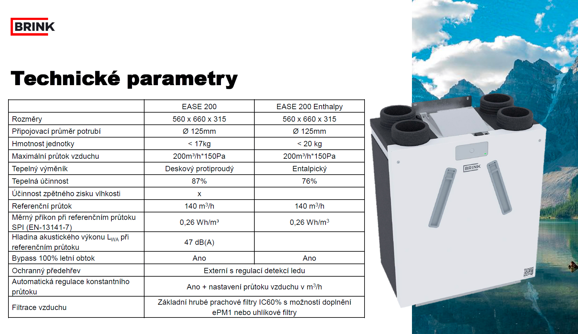 Rekuperace BRINK EASE 200 - Rovnotlaké větrání i v zimních měsících