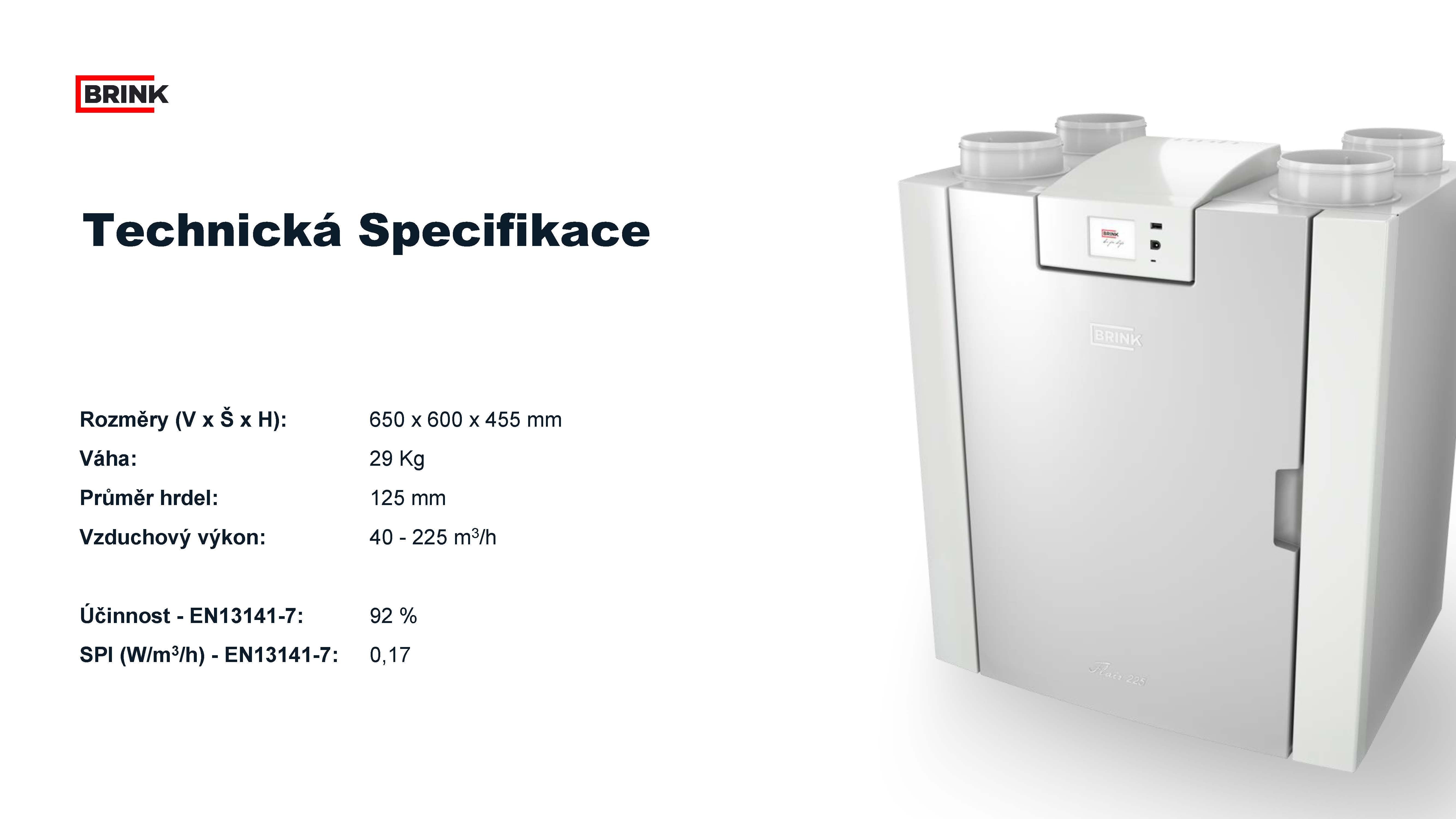 Rekuperace Brink Flair 225 (Shoda s WOLF CWL-2) - Špičkové parametry