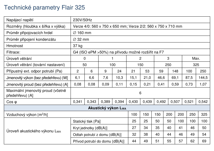 Rekuperace Brink Flair 325 (Shoda s WOLF CWL-2) - Špičkové parametry