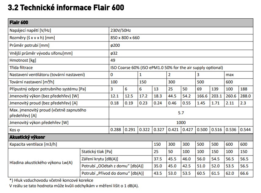 Průtok vzduchu až 600 m³ / h