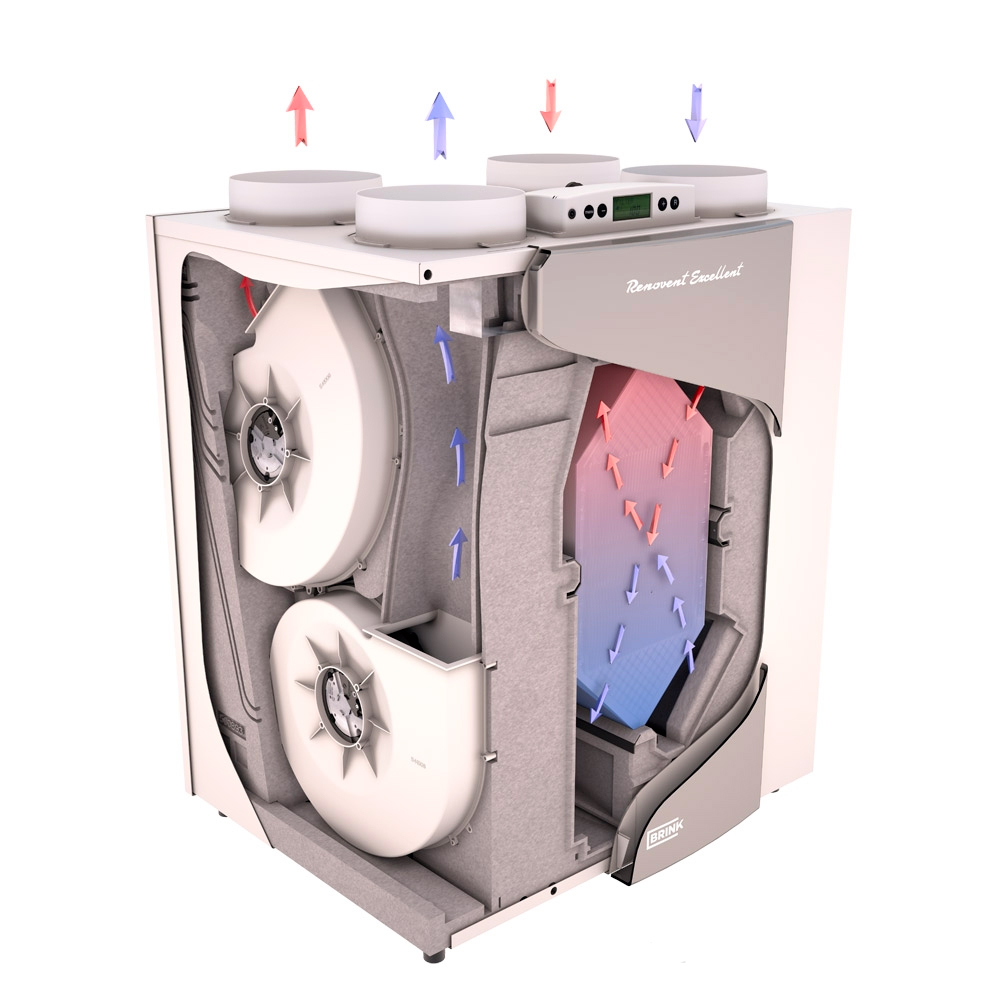 Rekuperační jednotky BRINK Renovent Excellent obsahují již po několik generací ověřenou automatickou regulaci konstantního průtoku, která usnadní zprovoznění a nastavení jednotky a především zajistí maximální účinnost bez ohledu na měnící se okolní podmínky. Současně jsou rekuperační jednotky vybaveny vestavěným ochranným předehřevem se sofistikovanou regulací s detekcí ledu, která zajistí rovnotlaké a účinné větrání s rekuperací vzduchu i za velmi nízkých venkovních teplot. Rekuperační jednotka BRINK Renovent Excellent je dále standardně vybavena bypass klapkou pro letní větrání.