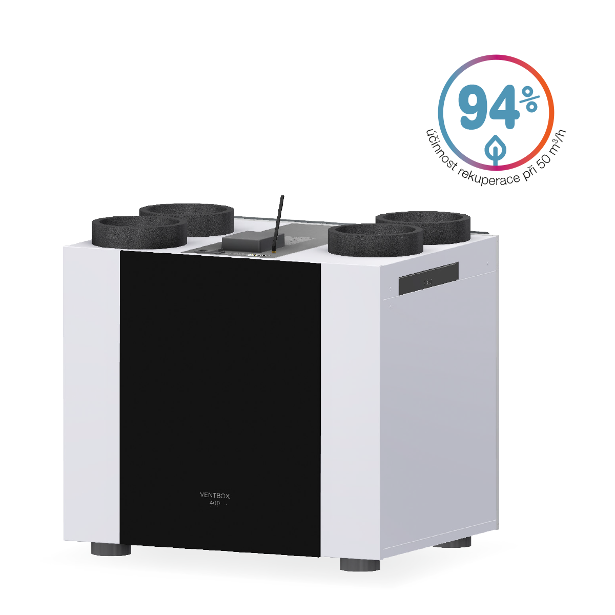 Díky pokročilému systému čištění vzduchu a kvalitním filtrům VENTBOX 400 efektivně odstraňuje pachy, alergeny a pyl, což ocení zejména alergici a lidé s dýchacími potížemi. Jednotka také účinně odvětrává a odvlhčuje (jednotky je možné osadit entalpickým výměníkem, který kromě zpětného získávání tepla umožňuje i zpětný zisk vlhkosti),čímž brání vzniku plísní a udržuje optimální vlhkost v interiéru.