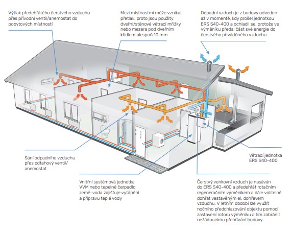 odvod vzduchu z/do jednotlivých místností.
