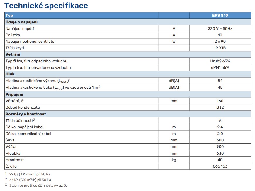NIBE ERS S10 je rekuperační jednotka s vysokou účinností až 92 % a nízkou spotřebou energie. Rekuperační jednotka se používá v domech s rozlohou do cca 300 m2. NIBE ERS S10 je navržena pro instalaci se zemním tepelným čerpadlem NIBE nebo tepelným čerpadlem NIBE vzduch – voda pro vytvoření kompletního systému vytápění a větrání. Rekuperační jednotka se snadno ovládá přímo z tepelného čerpadla. Rekuperační jednotka je součástí řady NIBE "S", která je přirozenou součástí vaší chytré domácnosti. Chytrá technologie automaticky upravuje vnitřní klima ovládáním z telefonu nebo tabletu. Poskytuje maximální pohodlí, minimální spotřebu energie a současně šetří životní prostředí.