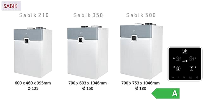 Jednotka je vybavena plně automatickým řídicím systémem, který v kombinaci se čtyřmi senzory teploty a relativní vlhkosti zajišťuje plynulou regulaci otáček dle aktuálního požadavku, bez nutnosti jakéhokoliv dalšího zásahu do ovládání jednotky. Ve výkonových charakteristikách jsou vyznačeny křivky pro jednotlivé otáčky (podrobnosti viz návod k obsluze). Designový drátový ovladač umožňuje manuální přepínání otáček ventilátorů, ovládání by-passu, zapnutí funkce intenzivní větrání (boost), aktivaci automatického provozu, nočního vychlazování a signalizaci zanesení filtrů. Ve variantě RF je jednotka doplněna radiofrekvenčním dálkovým ovládačem, který umožnuje manuální přepínání otáček ventilátorů a aktivaci automatického provozu. Další nastavení jednotky se provádí pomocí DIP přepínačů a potenciometrů na řídicí elektronice jednotky (po sejmutí předního krytu). Jednotka má čtyři přednastavené týdenní programy, z nichž jeden umožňuje automatický provoz od čidla vlhkosti, vestavného senzoru VOC (volitelné příslušenství) nebo nadřazeného analogového signálu 0–10 V. Jednotky SABIK je možné doplnit o vestavný modul zajišťující regulaci na konstantní průtok vzduchu SABIK-NEMBUS-SF. Pomocí externího modulu SPCM je umožněn přístup k platformě ConnectAir (cloud S&P).