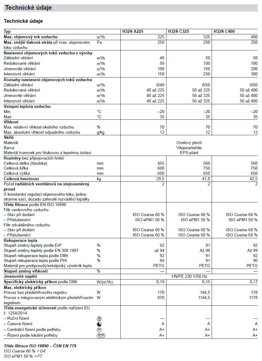 Technické údaje - Rekuperace Viessmann Vitovent 300-W H32S A225