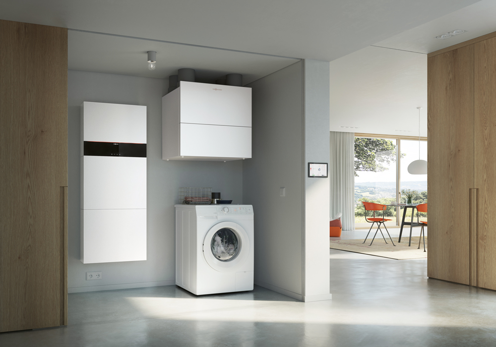 Tichý, kompaktní a snadno integrovatelný do domácího energetického systému: to jsou přednosti nového větracího systému Vitovent 300-W. V kombinaci přímo s tepelným čerpadlem Vitocal jej lze pohodlně ovládat pomocí aplikace ViCare a chytrého telefonu. Díky internetovému připojení systému mohou obchodní partneři kontrolovat jeho správnou funkci prostřednictvím webového prohlížeče pomocí aplikace ViGuide. Vitovent 300-W lze instalovat i nezávisle na něm jako samostatný systém – například v podkroví.