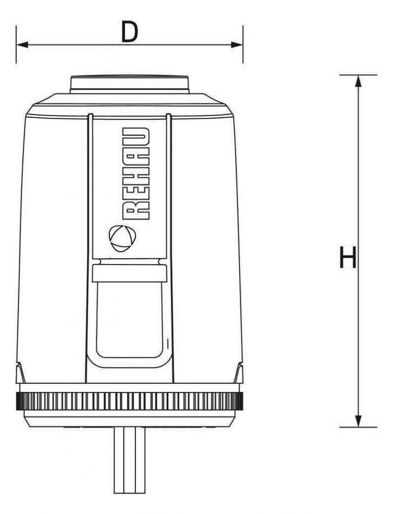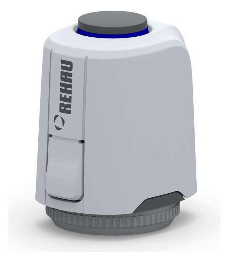 Termický servopohon pro ovládání ventilů na vratném potrubí REHAU rozdělovače podlahové topení, bez napětí zavřeno. Ukazatel zdvihu s kontrolou úpravy na vrchní straně servopohonu. Jednoduchá montáž nasunutím na adaptér ventilu. „Funkce prvního otevření“ pro provoz plošného vytápění během stavby (před montáží prostorových termostatů). Možnost použití na různé ventily pomocí adaptéru.